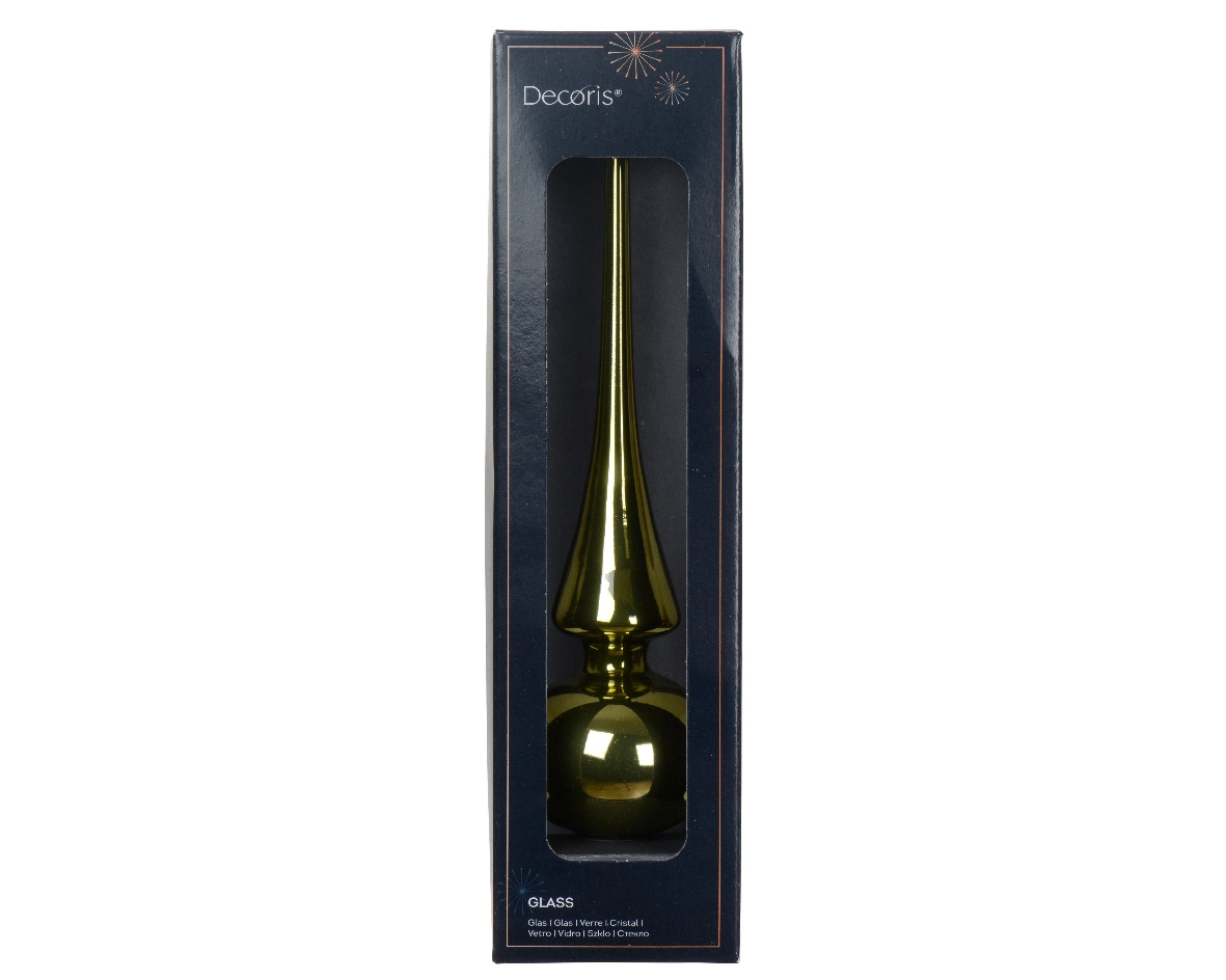 De feestdagen komen eraan en het is tijd om je kerstboom een verfijnde uitstraling te geven! Deze schitterende piek van Decoris in een stijlvolle rozemarijnkleur is ideaal voor een luxe en moderne afwerking. Gemaakt van hoogwaardig glas en afgewerkt in een glanzende rozemarijntint, voegt deze piek een elegante en sfeervolle touch toe aan je kerstdecoratie.