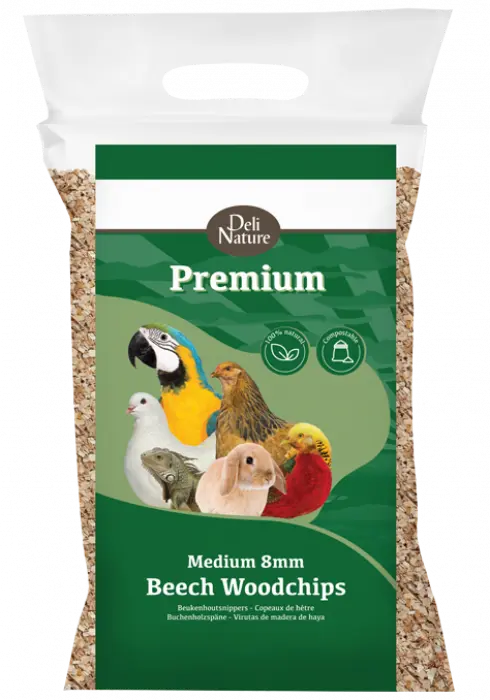 Deli Nature FSC-gecertificeerde Beukenhout Premium Medium 8mm biedt stofvrije beukenhoutsnippers, perfect geschikt als bodembedekking voor diverse dierenverblijven, zoals knaagdierverblijven, vogelkooien, binnen-volières, kippen- en duivenhokken, en terrariums. Deze gedroogde, 100% natuurlijke snippers zijn ontworpen om vocht te absorberen en schimmelvorming te voorkomen, waardoor een optimale hygiëne wordt gewaarborgd. Gebruiksaanwijzing: Vul het dierenverblijf met een laag van 5cm Deli Nature Beukenhoutsnippers en vervang deze wekelijks voor een frisse omgeving. Na gebruik kunnen de beukenhoutsnippers op milieuvriendelijke wijze worden afgevoerd via het GFT-afval of op de composthoop. Het wordt aanbevolen om het product droog te bewaren voor behoud van kwaliteit.