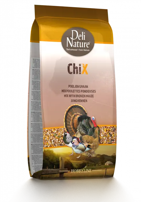 ChiX Poeljengraan is een hoogwaardige graanmengeling van gebroken granen, perfect geschikt voor krielen, kleinere hoenders en diverse soorten sierpluimvee. Deze mengeling bevat een assortiment energie- en eiwitrijke granen en zaden, waaronder gebroken maïs, tarwe, milo, gebroken groene erwten, zonnepitten en cardi. Het biedt een ideale aanvulling op samengestelde voeders voor kippen, sierhoenders, kalkoenen en watervogels. ChiX Poeljengraan is verkrijgbaar in handige verpakkingen van 4 kg, waardoor het gemakkelijk is om uw pluimvee van voedzame en smakelijke voeding te voorzien.
