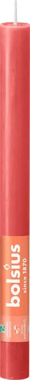 Maak van elk moment een bijzonder moment! Met het natuurlijke licht van kaarsen zorg je voor warmte en sfeer in huis en maak je het gezellig. De Bolsius rustieke dinerkaarsen in de roze kleur Blossom Pink zijn 27cm hoog, druipen niet en branden wel 13 uur. Gemaakt met liefde voor mens en planeet, zonder palmolie en met natuurlijke vegan wax. Door het katoenen lontje altijd een perfecte vlam, zonder zwarte aanslag of walm.