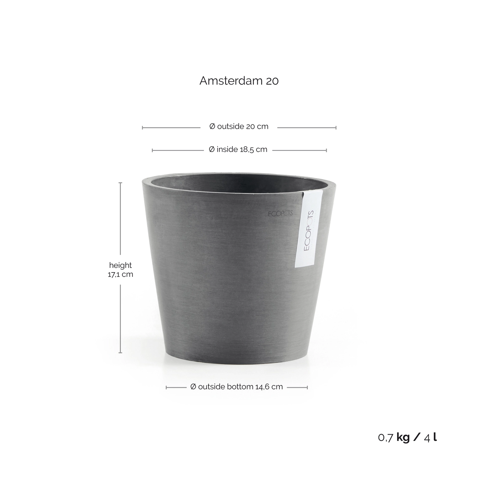 Ecopots Bloempot Amsterdam Ø20cm - Grijs