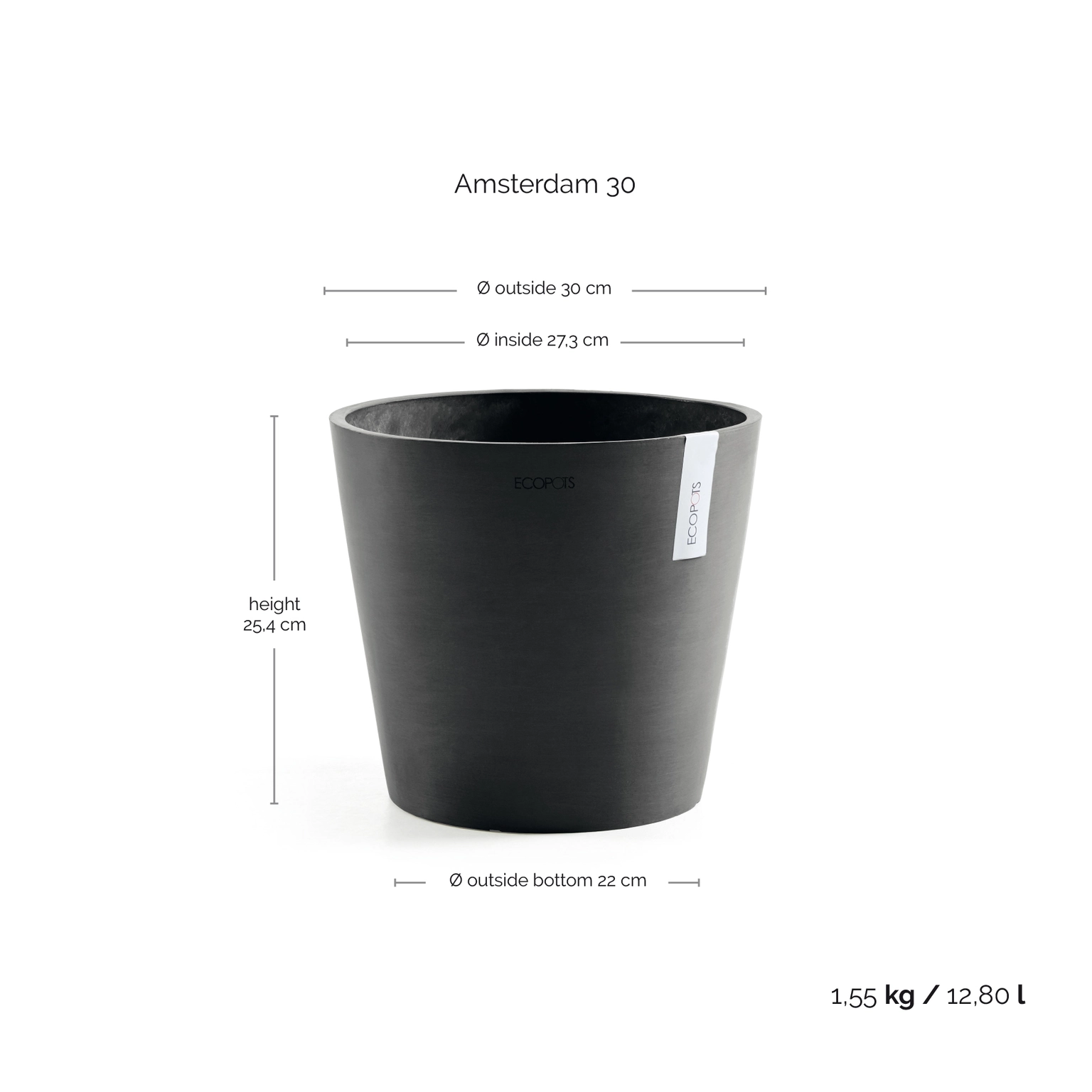 Ecopots Bloempot Amsterdam Ø30cm - Donkergrijs