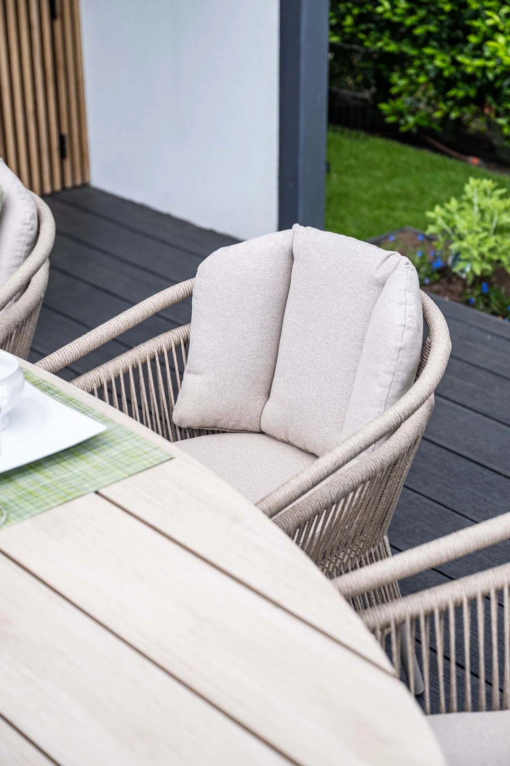 Dankzij de neutrale kleur en natuurlijke houtlook past deze tafel bij verschillende soorten stoelen. Combineer met aluminium stoelen voor een moderne stijl, of met wicker fauteuils voor een klassieke, sfeervolle uitstraling. Het Vironwood blad is kleurvast, sterk en eenvoudig schoon te maken met een zachte doek en mild sopje. Zo blijft de tafel seizoen na seizoen mooi en gebruiksklaar.