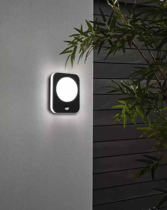 De LED buitenwandlamp MADRIZ bestaat uit een zwarte, rechthoekige behuizing van gegoten aluminium met afgeronde hoeken. De ingebouwde LED's achter het ronde lichtvlak en de rondom lopende lichtlijst van witte kunststof geven een aangenaam, warm wit licht. Bovendien zorgen de LED-lichtlijsten voor een harmonieuze indirecte verlichting. De wandlamp is tevens voorzien van een bewegingssensor en schakelt automatisch het licht in, moeilijk zichtbare plekken worden verlicht en ongenode gasten worden afgeschrikt. De geïntegreerde schemersensor meet de omgevingshelderheid en schakelt het licht alleen in als het echt nodig is. De buitenlamp is spatwaterdicht (IP44) en kan zonder problemen buitenshuis gebruikt worden.