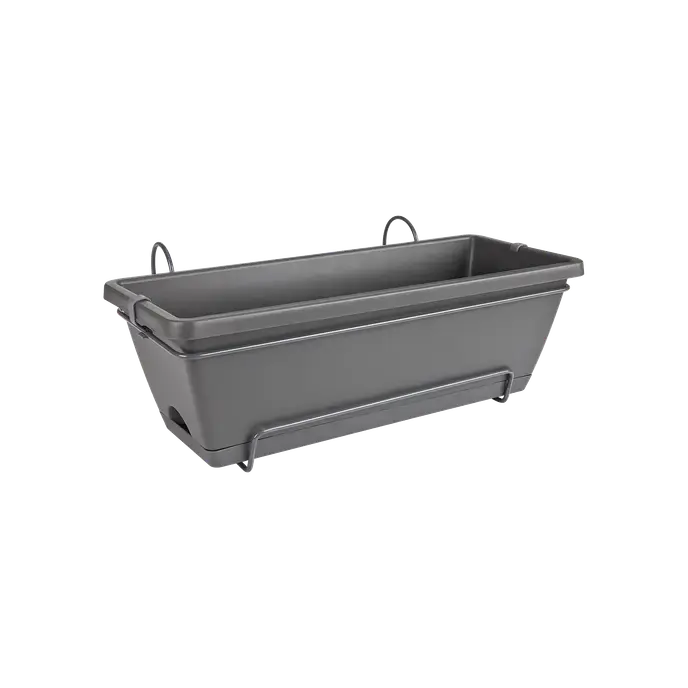 Met het geïntegreerde metalen rekje past deze balkonbak op vrijwel iedere railing tot 6,5 cm breed. Ideaal voor zowel stadsappartementen als plattelandshuizen.
