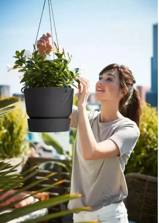 Het lekkere weer komt er weer aan en met de Elho bloempot fleur je direct je tuin op. Deze Elho hangschaal is gemaakt van 100% recyclebaar polypropyleen. Daardoor heb je niet alleen een mooie balkon of tuin, maar ben je ook gelijk goed bezig voor het milieu. Elho staat voor het lang behouden van zijn producten. Deze prachtige design pot van gerecycled plastic is vorstbestendig en daardoor geschikt voor alle seizoenen in de tuin of op het terras. Deze hangschaal van Elho komt in de prachtige kleur black. Deze bloempotten zijn gemaakt van hoge kwaliteit plastic, waardoor ze makkelijk schoon te maken zijn, niet snel beschadigen en dus tegen een stootje kunnen. De diameter van de buitenkant is Ø27cm en de hoogte is 20,5 cm. Deze bloembak is nog in veel meer kleuren beschikbaar. Is dit niet de bloembak die je zoekt? Of wil je nog even verder kijken? Bekijk hier al onze bloempotten in verschillende kleuren en maten.