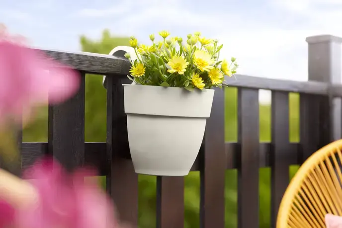 Wil jij meer groen op je balkon brengen? Dan is de Vibia Campana Easy Hanger iets voor jou. Deze balkonbakken passen op railings tot 6,5 cm breed. Dankzij het overlooppijpje blijft overtollig water niet in de pot, wat zorgt voor gezonde planten. Gemaakt van 100% gerecycled plastic en geproduceerd met windenergie, is deze pot ook volledig recyclebaar.