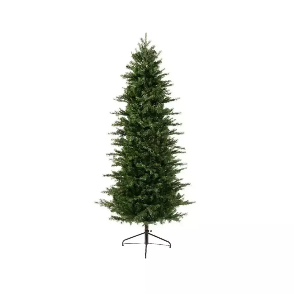 De Everlands Kunstkerstboom Grandis Slim Fir met een hoogte van 210 centimeter in de kleur groen is een prachtige kunstmatige kerstboom die speciaal is ontworpen om je huis te voorzien van een feestelijke en realistische kerstsfeer. Hier is een gedetailleerde omschrijving van deze kunstkerstboom: