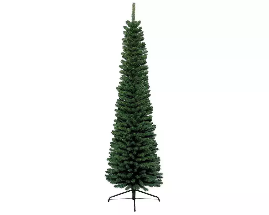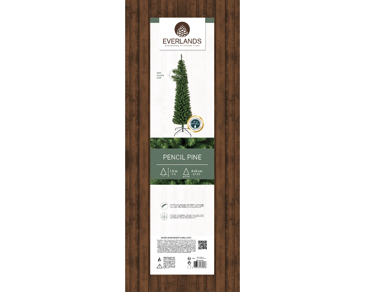 Deze Everlands kunstkerstboom heeft een doorsnede van slechts 50cm. Daarmee is deze slanke kunstboom ideaal in kleinere ruimtes. Het type 'Pencil Pine' kerstboom is naast 150cm ook leverbaar in 180cm, 210cm en 240cm.