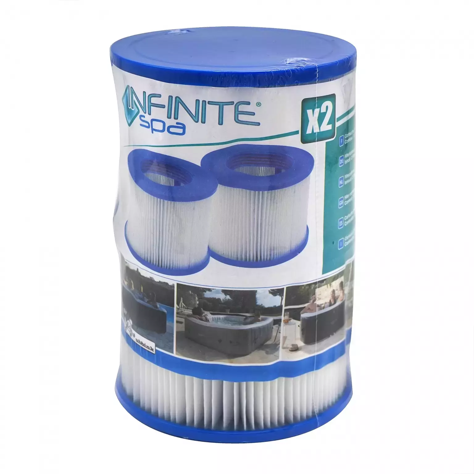 Wat extra filters nodig voor in je opblaasbare jacuzzi? Dan ben je bij Toptuincentrum aan het juiste adres. De filter van je jacuzzi moet om de 2 a 3 maanden vervangen worden. De filters worden per twee stuks geleverd en kunnen worden gebruikt bij alle Infinite Spa’s. Met 2 stuks kun je dus een aardige tijd voorbij. De filters hebben een hoogte van 10cm en een diameter van 10 cm. Het is belangrijk om de filters regelmatig te vervangen. De filters hebben een blauw met witte kleur.