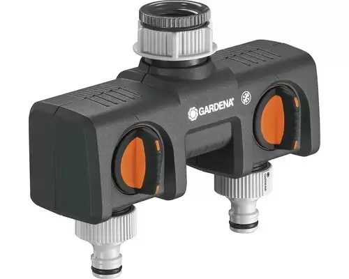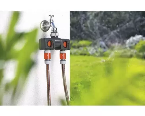 Met De GARDENA 2-weg-waterverdeler kunt u gelijktijdig twee accessoires aansluiten op één kraan. De uitgangen zijn traploos regelbaar. Op de verdeler kunnen twee GARDENA besproeiingscomputers of watertimers worden aangesloten. De 2-weg-waterverdeler kan met het Prof-System kraanstuk worden omgezet in het GARDENA Prof-System voor een grotere waterdoorvoer. De GARDENA 2-weg-waterverdeler is geschikt voor 26,5 mm (G3/4)-waterkraan met en 33,3 mm (G 1)-draad en 21 mm (G 1/2)-waterkraan met 26,5 mm (G 3/4)-draad.