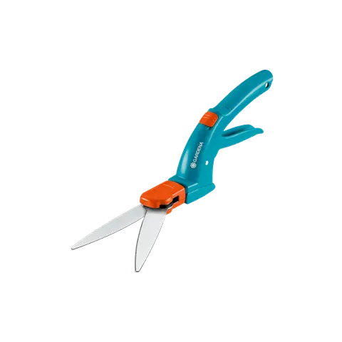De GARDENA Classic grasschaar, met een 360° draaimechanisme, ergonomische handgreep, geharde messen, en enkelhandige vergrendeling, is ideaal voor zowel rechtshandige als linkshandige gebruikers.