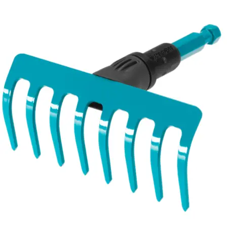 De GARDENA combisystem-hark is een handig en multifunctioneel gereedschap en is uitermate geschikt voor kleinere karweien als het harken, egaliseren en bewerken van de grond. De hark heeft een werkbreedte van 15 cm (met 8 tanden) en is geschikt voor alle stelen van het GARDENA combisystem, waarbij GARDENA een steellengte van 130 cm adviseert, afhankelijk van uw lichaamslengte.