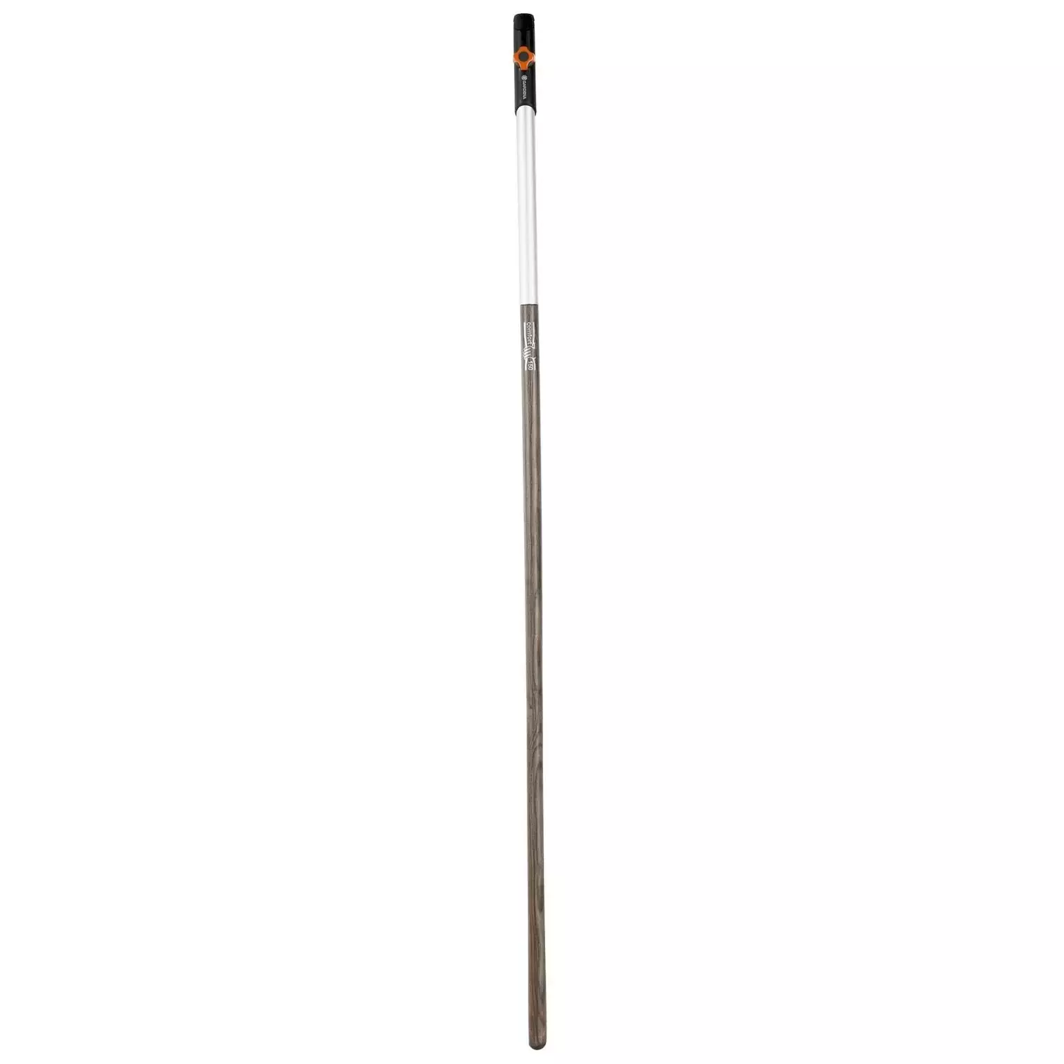 Met de GARDENA combisystem-houtensteel FSC® 100 % kunnen alle combisystem-gereedschappen naar wens worden verlengd. Het hoogwaardige, veerkrachtige Europese essenhout dempt trillingen en heeft een FSC-certificaat. Dat betekent dat er voor de productie van de stelenuitsluitend hout uit goed beheerde en duurzame bossen wordt gebruikt. De getailleerde, 130 cm lange steel is antislip en ligt goed in de hand. Een geanodiseerde aluminium buis aan het eind van de steel heeft een kunststof ommanteling en staat borg voor een degelijke verbinding en een veilig houvast van het combisystem-gereedschap. De vastzetschroef met zachte kunststof componenten om het combisystem-gereedschap mee vast te zetten, is op een dusdanige manier veilig bevestigd dat je hem niet kunt verliezen.