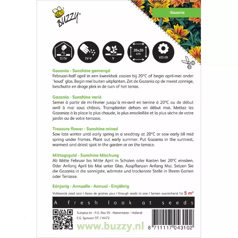 Buzzy Seeds is toegewijd aan het produceren van de beste zaden. De zaden zijn 100% natuurlijk en niet genetisch gemanipuleerd. Naast alle verplichte EU voorwaarden, moeten de zaden ook voldoen aan de eisen van Buzzy Seeds zelf. Hierdoor controleren zij eigenhandig de zaden in het laboratorium en de proefvelden, waardoor de producten van aanzienlijke waarde worden aangeboden. Bekijk hier het assortiment van Buzzy Seeds bij Toptuincentrum.