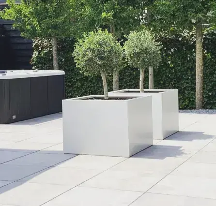 De GLM Plantenbak Casablanca met bodem in zuiver wit (RAL 9010) is een elegante en duurzame plantenbak voor tuin, terras of balkon. Het strakke ontwerp in combinatie met het vierkante formaat van 60x60x60 cm maakt deze witte stalen plantenbak perfect voor moderne buitenruimtes.