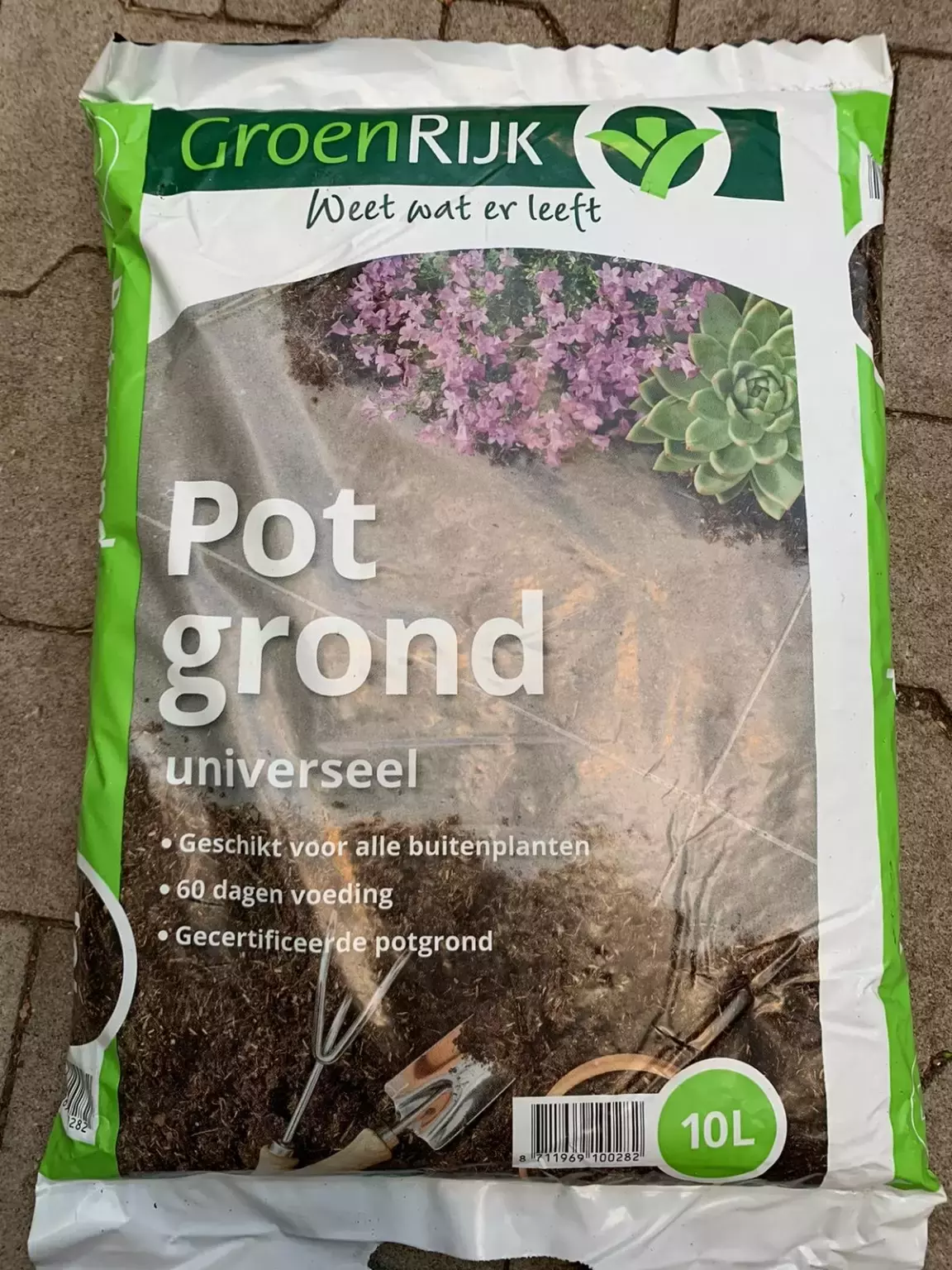 Wil je een goede bodem voor je planten? Gebruik dan de potgrond van GroenRijk! De potgrond is geschikt voor alle kamer, kuip, vaste en perkplanten. De GroenRijk potgrond is universeel en dus geschikt voor alle buitenplanten in bloempotten en plantenbakken. De hoofdbestanddelen zorgen voor een goede mix waarin planten zich goed kunnen ontwikkelen. De potgrond bevat uitsluitend hoogwaardige grondstoffen zoals, turfstrooisel, tuinturf, kalk en houtvezel. Er zit voldoende voeding in voor 60 dagen.