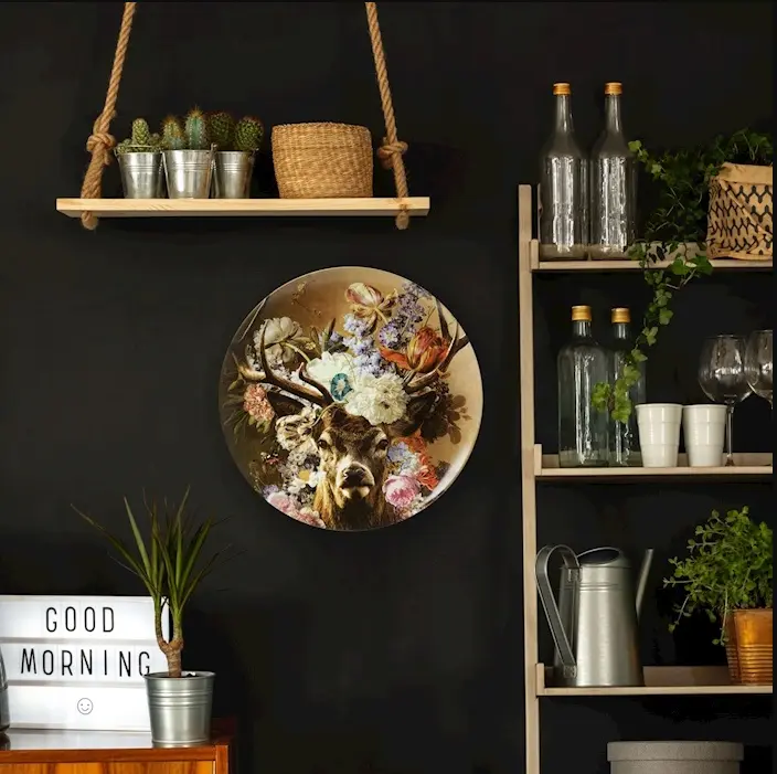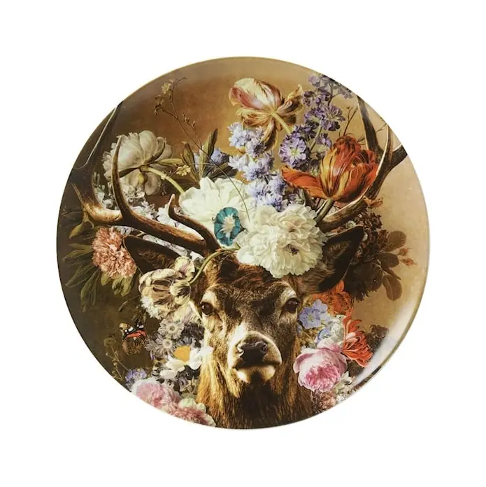Ben jij opzoek naar een mooi wandbord met waar het in de Nederlandse bosrijke gebieden mee vol staan? dan is Heinen Delfts Blauw wandbord Edelhert de juiste keuze. Heinen Delfts Blauw maakt het mogelijk om dit dier dagelijks in je huis te bewonderen valt. Het schilderij toont een donkere achtergrond met kleurrijke bloemen en een Edelhert voorop. De kleurrijke bloemen zijn geïnspireerd op de schilderkunst uit de 17e eeuw. Dit stijlvolle wandbord is zeer geschikt om cadeau te doen aan vrienden familie of collega`s - zelfs als uniek relatiegeschenk - dat maakt zeker indruk. Het wandbord heeft gaatjes aan de achterkant waardoor ze eenvoudig kunnen worden opgehangen. Kortom, dit wandbord is een ideaal decoratiestuk om je huis sfeer te geven en om eindeloos te combineren met andere Delfts blauwe wandborden.