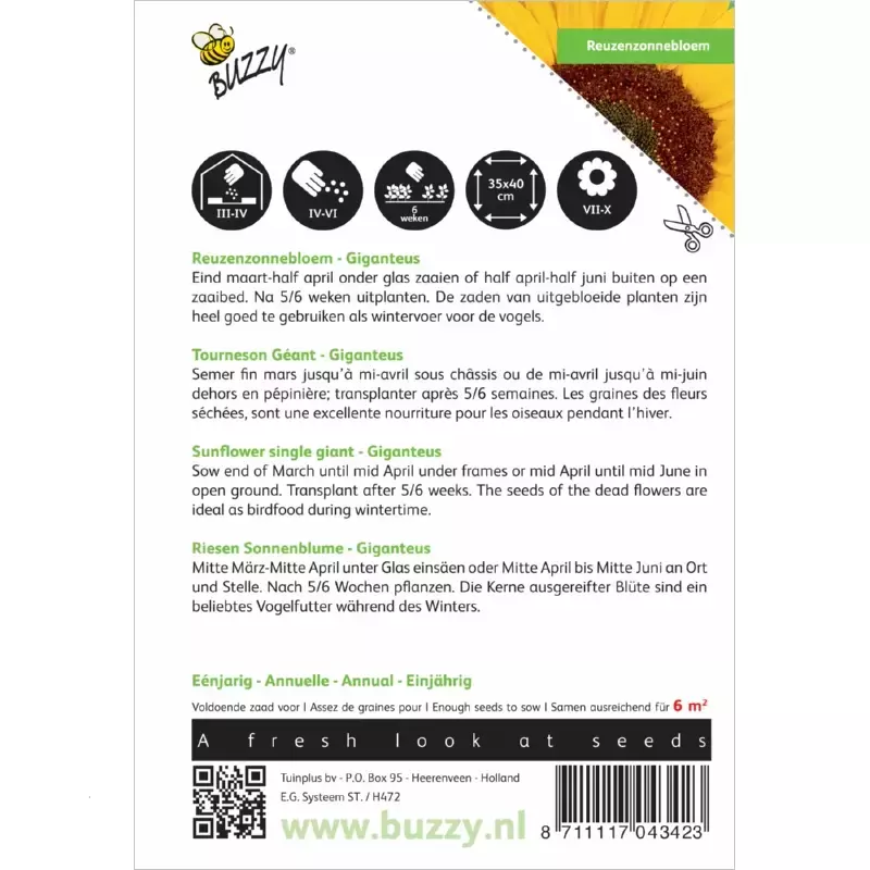 Schrijf zelf een recensie over "Helianthus, Reuzenzonnebloem Giganteus"