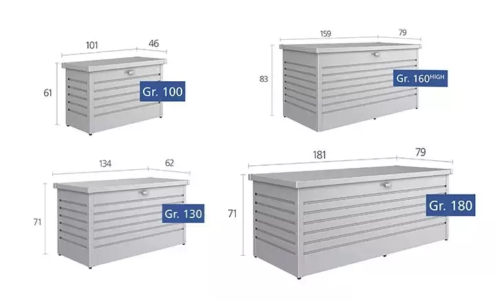 De ideale opbergbox voor alle kleine spullen! Mooi en praktisch in 5 kleuren (wit, zilver metallic, brons metallic, donkergrijs metallic en kwartsgrijs metallic) en 4 grootten (100, 130, 160HIGH en 180) verkrijgbaar.