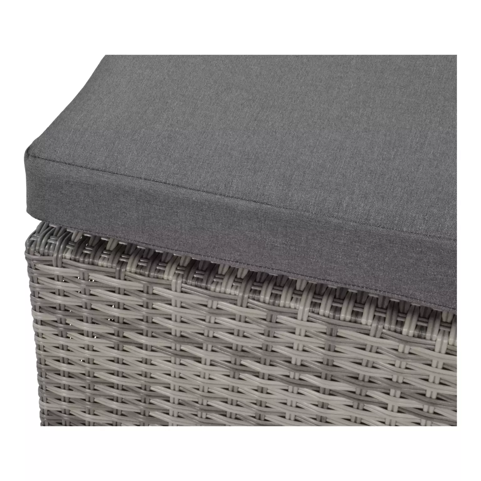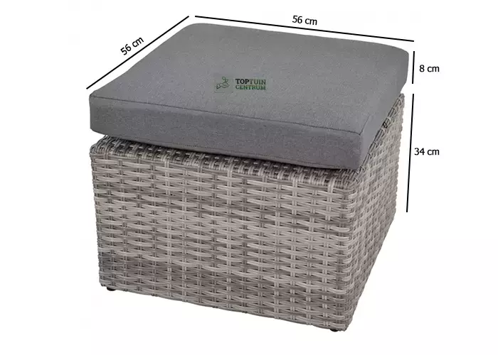 Met zijn afmetingen van 56 cm in lengte, 56 cm in breedte en 34 cm in hoogte, is de Hocker Valencia Smoke veelzijdig inzetbaar. Gebruik hem als een ontspannend voetenbankje na een lange dag, of als een extra zitplek wanneer gasten langskomen. De gemengd grijze wicker afwerking voegt een eigentijdse uitstraling toe die moeiteloos opgaat in diverse buitenomgevingen, van moderne terrassen tot gezellige tuinen.