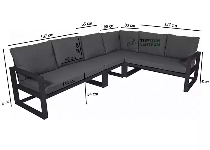 - Midden-sofa: 65 x 80 x 86 cm