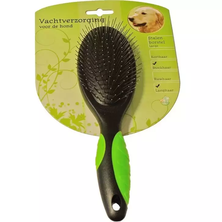 Deze stalen borstel verzorgt de vacht van jouw hond door middel van het verwijderen van losse en dode haren. Deze stalen borstel is geschikt voor alle langharige honden. Door de flexibele rug kam je gemakkelijk door de haren, zonder de huid te beschadigen of veel kracht te zetten. Het regelmatig kammen en borstelen van uw hond draagt er aan bij dat de vacht in topconditie blijft. Zo blijft de vacht glanzend schoon en ontstaan er minder snel klitten. Verzorg de vacht altijd in de richting van de haargroei, zodat de verzorging voor zowel u als jouw hond vlekkeloos verloopt.