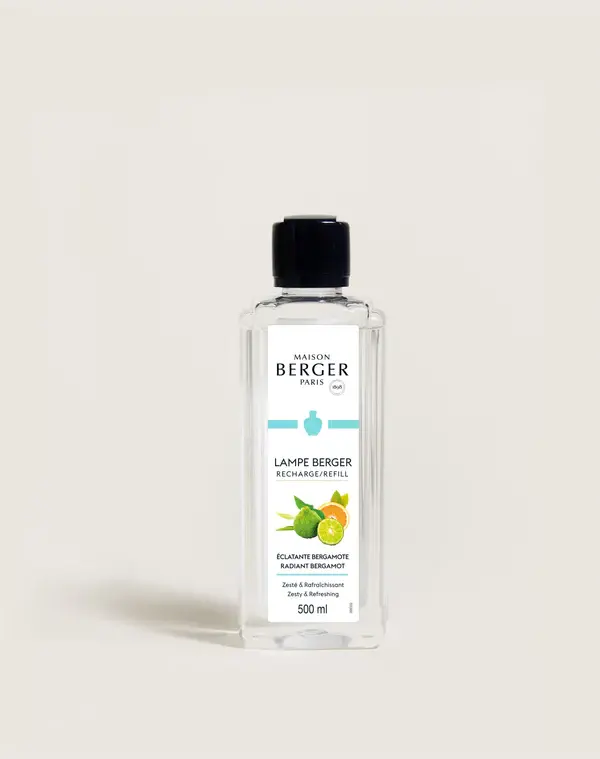 Een verfrissend citrusparfum dat u naar de zonnige kusten van Italië brengt.. Het Lampe Berger Huisparfum 500ml Eclatente Bergamote voor in uw Lampe Berger, onderdeel van de frisse geurfamilie van Maison Berger Paris, is geïnspireerd op de citrusvrucht uit de Italiaanse streek Calabrië die veel gebruikt wordt in parfums: de Bergamot.. Deze bijzondere vrucht is vermoedelijk ontstaan uit de natuurlijke kruising van zure sinaasappel met limoen. In het huisparfum Eclatente Bergamote wordt deze vrucht vergezeld door noten van mandarijn, sinaasappel, kardemom en een delicaat gebloemde basis van oranjebloesem en jasmijn om de onnavolgbare frisheid van bergamot te ervaren bij het zuiveren, reinigen en parfumeren van de binnenlucht met de Lampe Berger luchtreiniger.. De huisparfums van Maison Berger Paris worden stuk voor stuk gecreëerd in het Zuid-Franse Grasse. Omringt door de beste Franse parfumeurs worden er verfijnde geursferen ontwikkelt die tegelijkertijd slechts stoffen in de lucht verspreiden die perfect beheerst en gecontroleerd worden. Een belangrijke garantie voor degenen die de kwaliteit van de lucht die zij inademen van essentieel belang is.