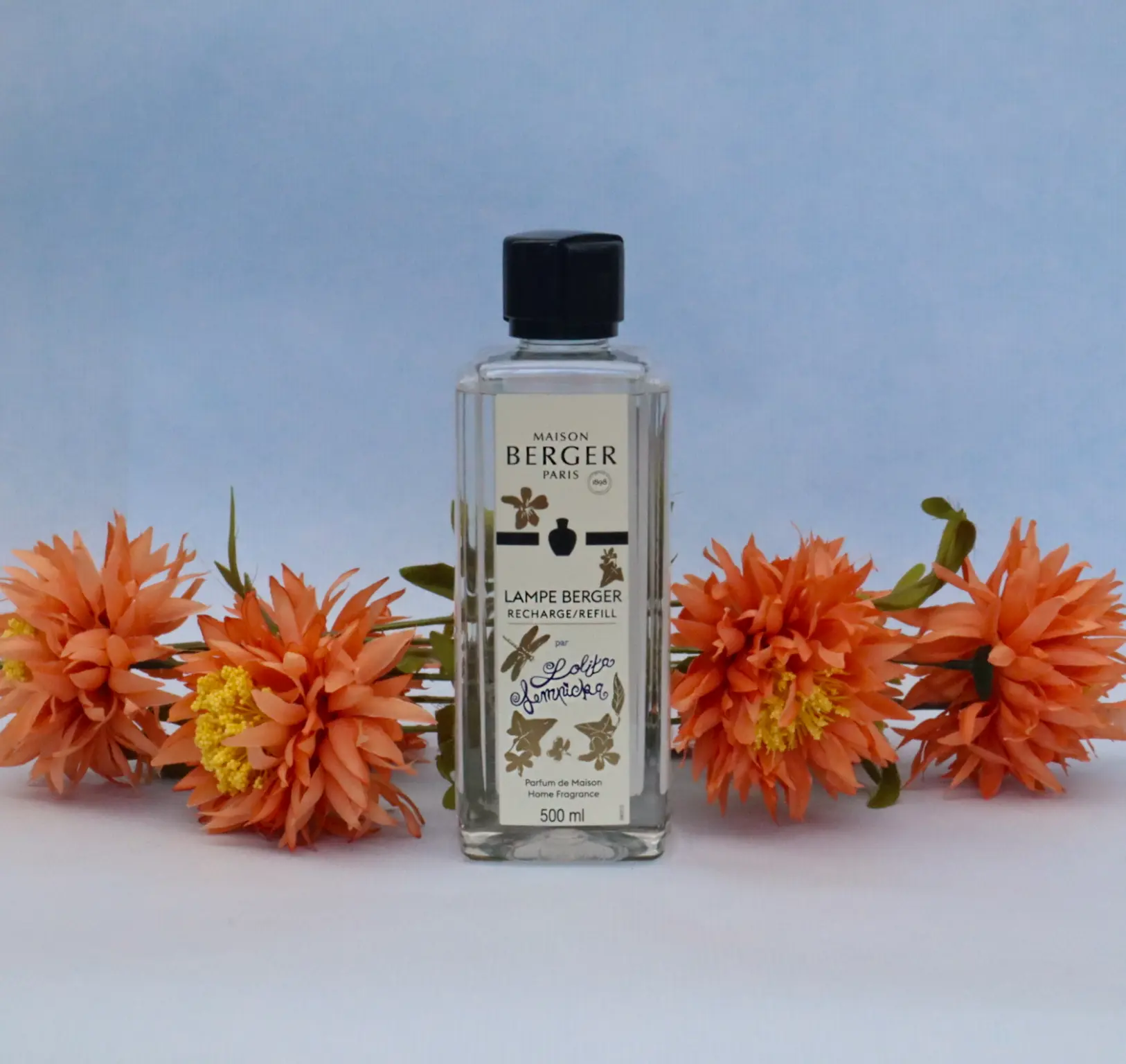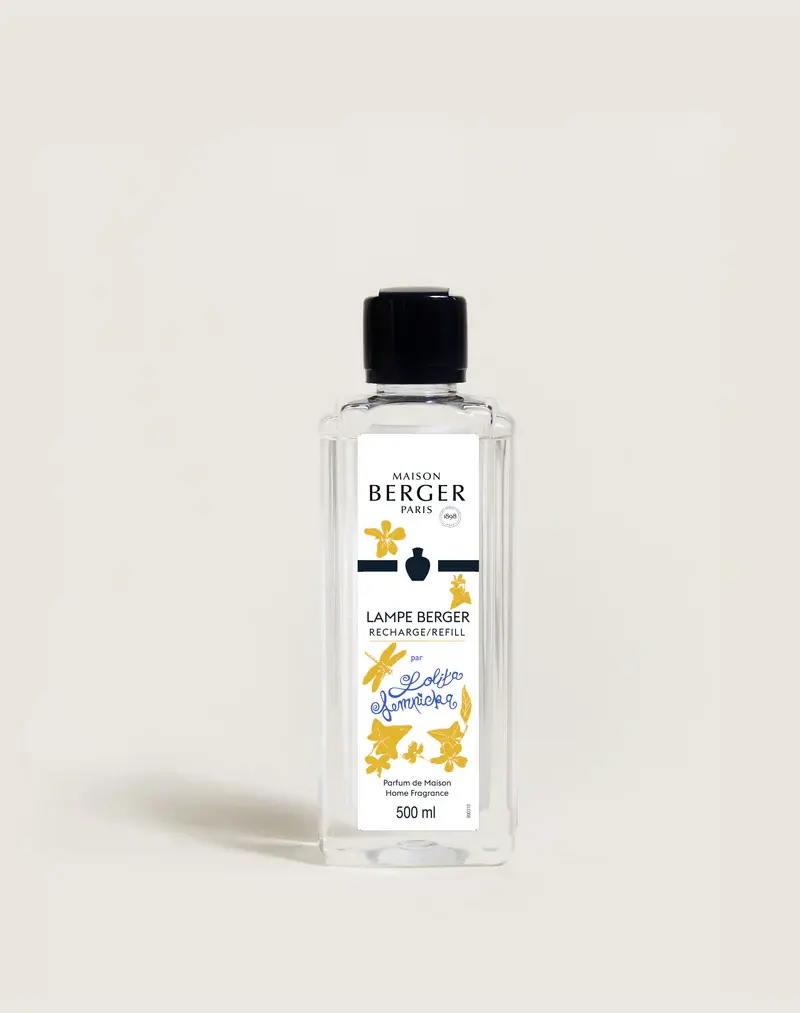 Het Lampe Berger Huisparfum 500ml Lolita Lempicka voor in uw Lampe Berger, onderdeel van de bloemige geurfamilie van Maison Berger Paris, is de droom van een ontwaken, dat van een reis voorbij uzelf, de eerste emoties dat uiteindelijk een mate van vrouwelijkheid onthuld.. Het fruitige delicatesse parfum is een exacte kopie van het lichaamsparfum van Lolita Lempicka: Mon Premier Parfum. Een technisch hoogstandje met een subtiele combinatie van onder andere zoethoutnoten, hartnoten van kers en bosviooltjes dat u uitnodigt op een denkbeeldige en sprookjesachtige reis langs de beroemde sensuele nektar: cistus labdanum! Zuiver, reinig en parfumeer uw interieur met uw Lampe Berger en het Lampe Berger Huisparfum Lolita Lempicka en ervaar de unieke geur die u ongetwijfeld in vervoering zal brengen.. De huisparfums van Maison Berger Paris worden stuk voor stuk gecreëerd in het Zuid-Franse Grasse. Omringt door de beste Franse parfumeurs worden er verfijnde geursferen ontwikkelt die tegelijkertijd slechts stoffen in de lucht verspreiden die perfect beheerst en gecontroleerd worden. Een belangrijke garantie voor degenen die de kwaliteit van de lucht die zij inademen van essentieel belang is.