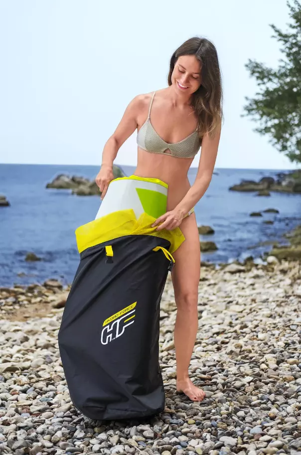 - Inhoud: Paddleboard, Peddel, Rugzak, Handpomp, Spiraalkoord, Vin en Reparatiekit