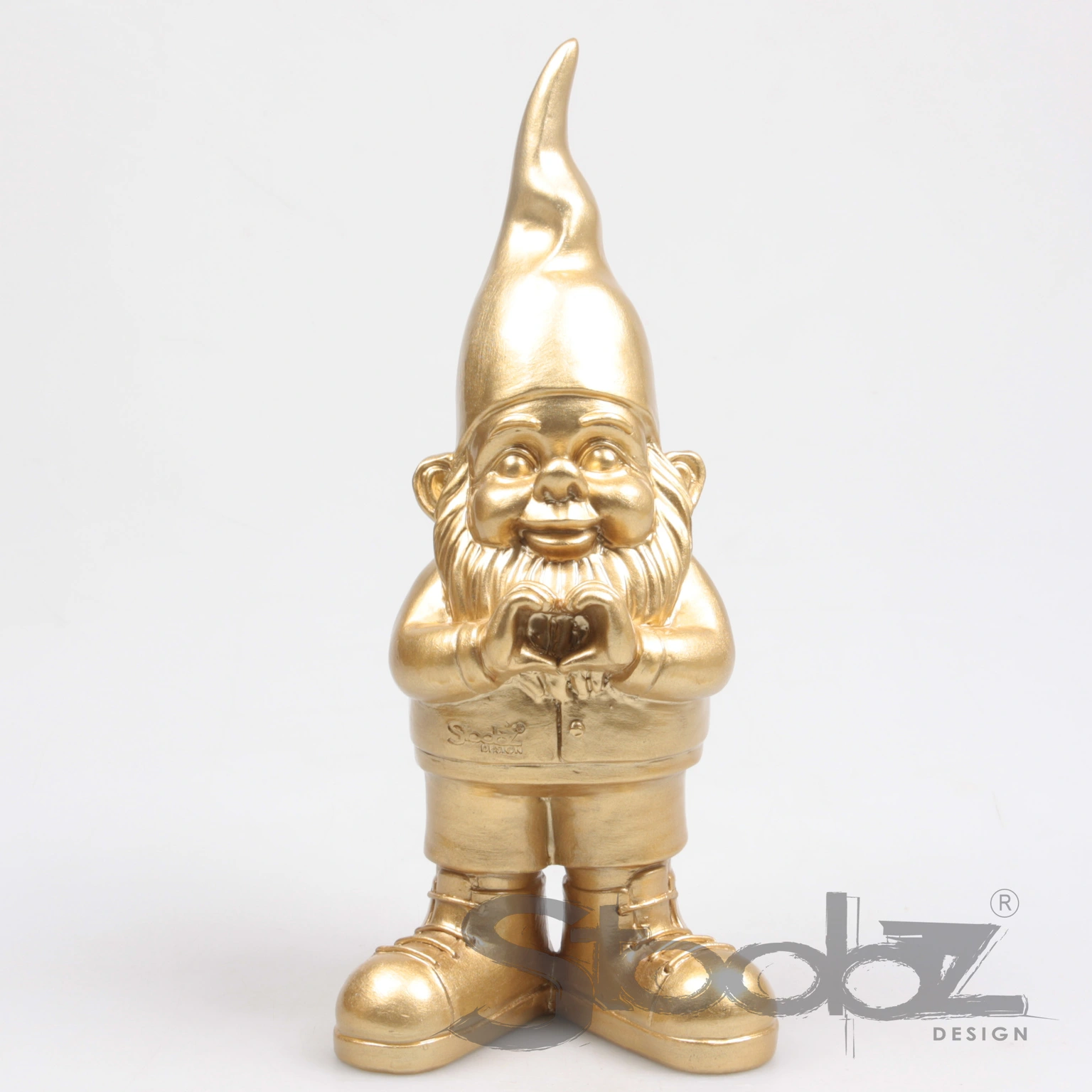Liefde in een gouden jasje: de Stoobz "Hart" kabouter is de perfecte manier om je buitenruimte een chique en hartelijke uitstraling te geven. Deze moderne gnome maakt een hart met zijn handen voor zijn borst, wat in combinatie met de glanzende gouden finish zorgt voor een uniek en stijlvol decoratiestuk. Met een hoogte van 29,5 cm is hij een opvallende verschijning die direct de sfeer in je tuin verhoogt.
