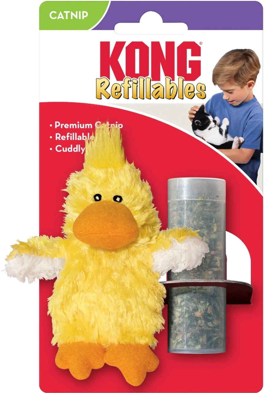 Ontdek de Kong Refillables Catnip Duck – een slim ontworpen, hervulbare kat speeltje dat inspeelt op de natuurlijke jachtinzichten van je kat. Het zachte eendvormige pluche heeft een veilig af te sluiten compartiment voor hoogwaardige Noord-Amerikaanse katnip. Hierdoor blijft het speelgoed langdurig grappig en stimulerend, zonder dat je telkens een nieuw speeltje hoeft aan te schaffen . Met een compacte lengte van ongeveer 9 cm is hij ideaal voor elk formaat kat. Vervang eenvoudig de katnipbag wanneer de geur vervaagt, en je kat beleeft keer op keer plezier. Perfect voor dagelijkse speelsessies, mentale stimulatie en duurzame kwaliteit — levenslang leerrijk speelplezier!