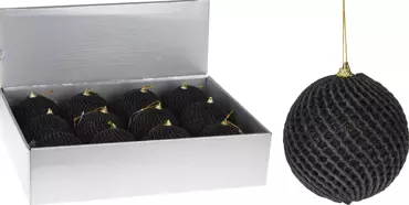 KERSTBAL GLITTER RUIT 10 CM - ZWART
