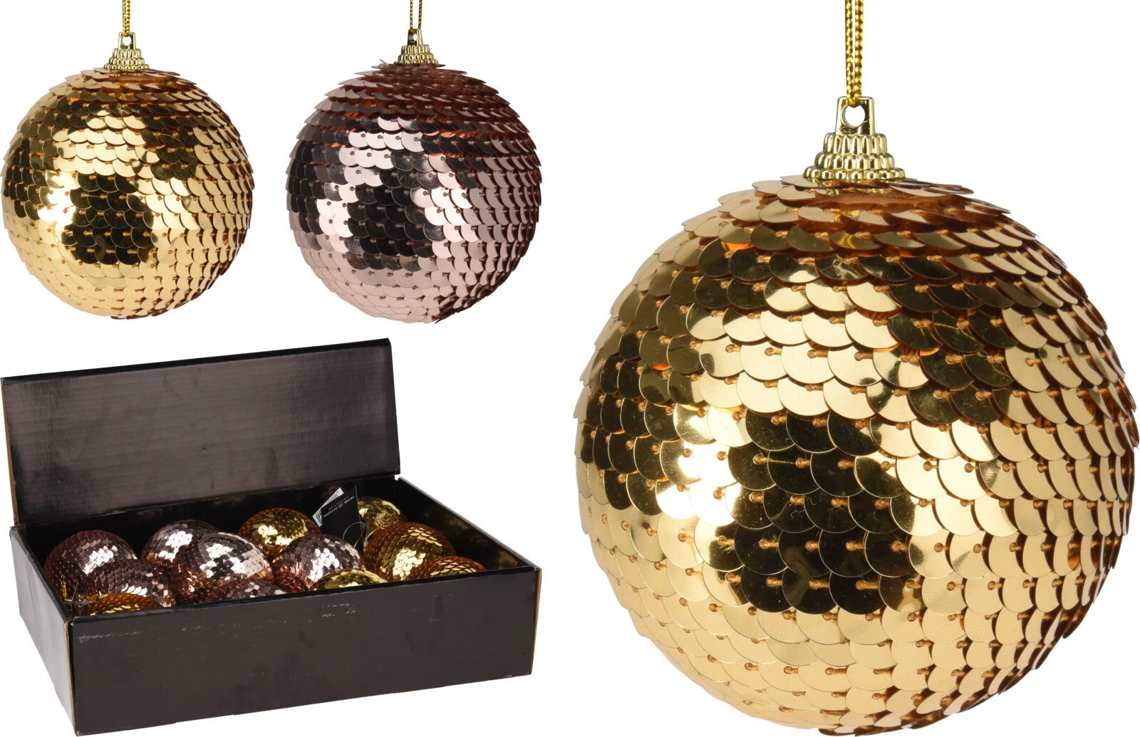 Voeg een vleugje glamour toe aan je kerstdecoratie met deze schitterende kerstbal van 7 cm bedekt met sprankelende pailletten. Verkrijgbaar in goud of paars, deze opvallende kerstballen zorgen voor een feestelijk en luxueus accent in je kerstboom.