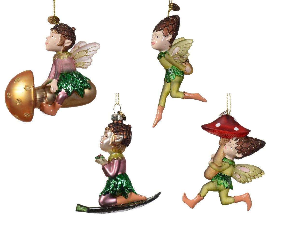De kersthanger van glas met elfjes (afmetingen: 7,5 x 3,1 x 10 cm) voegt een magisch en sprookjesachtig element toe aan je kerstdecoratie. Deze prachtige hangers hebben verschillende variaties, waarbij elk elfje een unieke pose aanneemt. In dit assortiment vind je elfjes die: