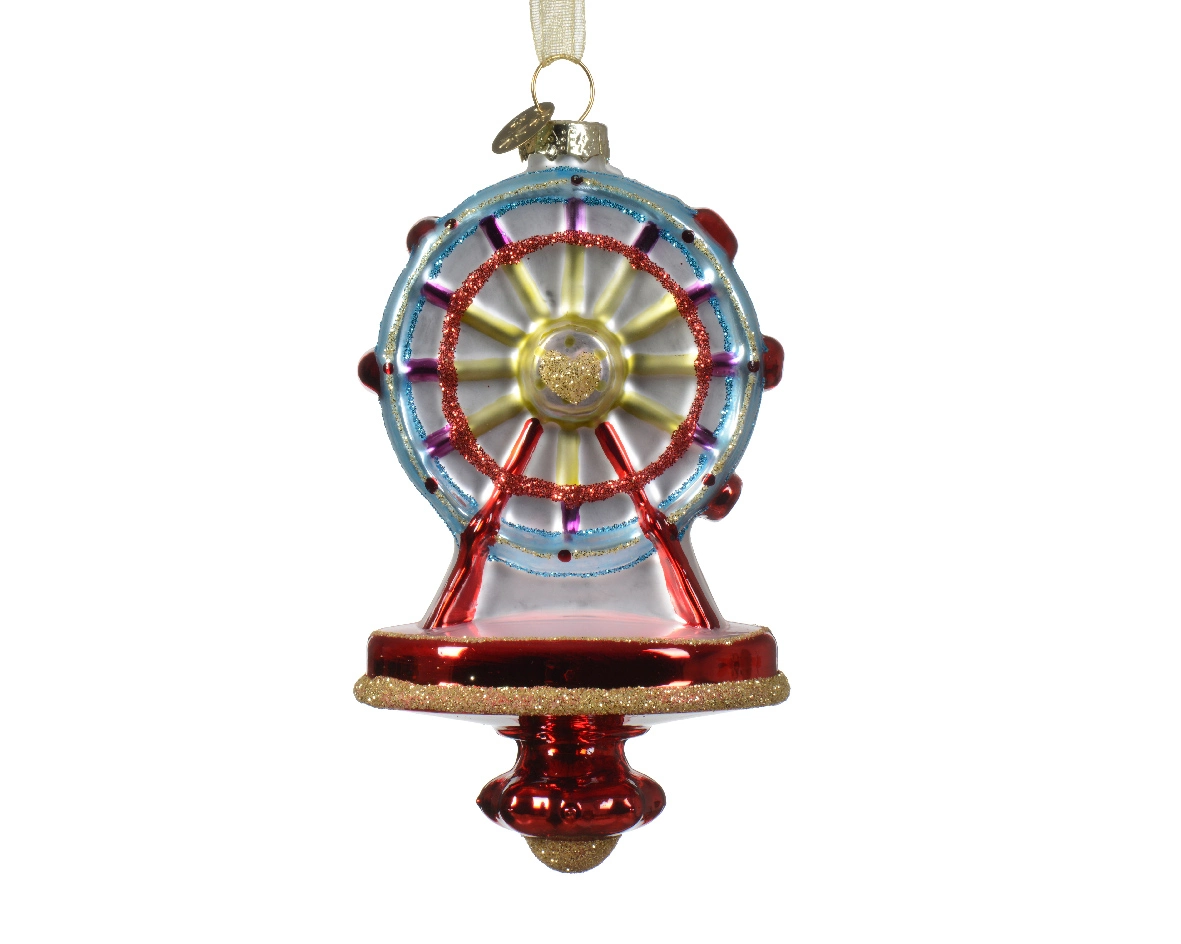 Geef je kerstdecoratie een vrolijke en nostalgische touch met deze prachtige kersthanger in de vorm van een reuzenrad en laat de magie van de feestdagen stralen!