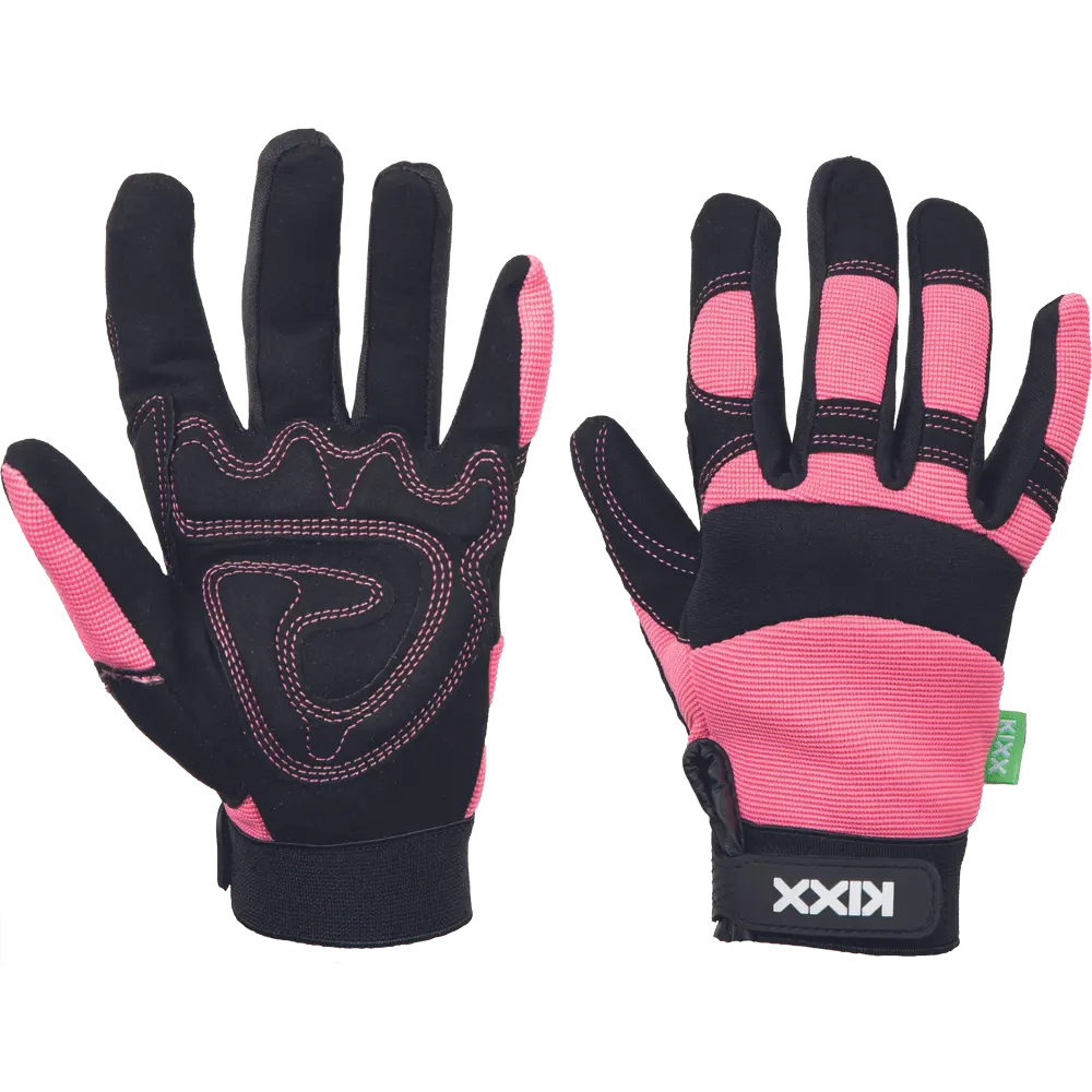 De Kixx Handschoen Rocky is gemaakt van een synthetisch leer. De handschoen heeft beschermende pads op de handpalmen. Ook heeft de handschoen bij de pols een klittenbandsluiting. Door de klittenbandsluiting zit de handschoen goed en stevig om de pols. Deze handschoen is er in maat 8. De Kixx Rocky is ook verkrijgbaar in maat 7. De Kixx Rocky is geschikt voor lichte en middelzware (tuin)werkzaamheden. De kleur van deze handschoen is zwart/roze.