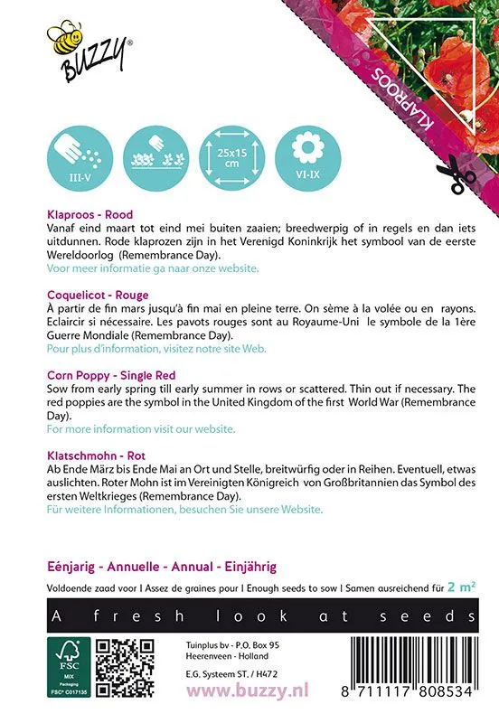 Schrijf zelf een recensie over "Klaproos poppies of the world rd 1g"