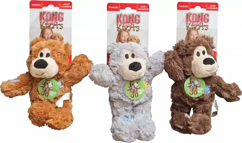 KONG Wild Knots Beer zijn zachte knuffels aan de buitenkant met duurzaam en sterk geknoopt touw aan de binnenkant. Het aan de binnenkant geknoopte touw voldoet aan de natuurlijke instincten van jouw hond en het versterkte pluche lichaam biedt extra duurzaamheid. KONG Wild Knots Beer hebben een minimale hoeveelheid aan vulling voor een minimum aan zooi. Alsof dat niet genoeg was, piepen ze!.