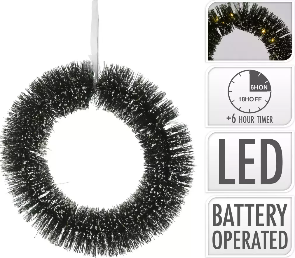 Deze mooie grote krans is 40 cm groot en heeft 30 LED lampjes. Dat zorgt dus voor een mooi lichtspektakel bij jou thuis. De krans werkt op batterijen en heeft een timer van 6 uur.