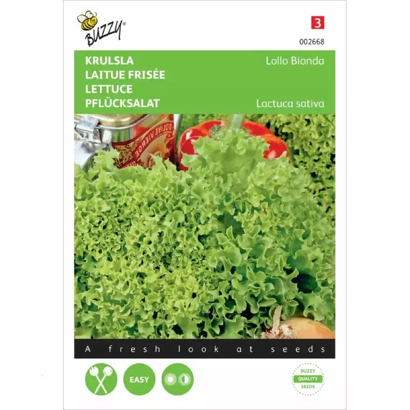 Krulsla - Lollo Bionda_x005F_x000D_ Februari-maart op een zaaibed onder glas zaaien. Of half maart-begin_x005F_x000D_ augustus in regels in de vollegrond zaaien. Door de open structuur en getande_x005F_x000D_ bladeren is dit ras minder aantrekkelijk voor slakken dan kropsla.