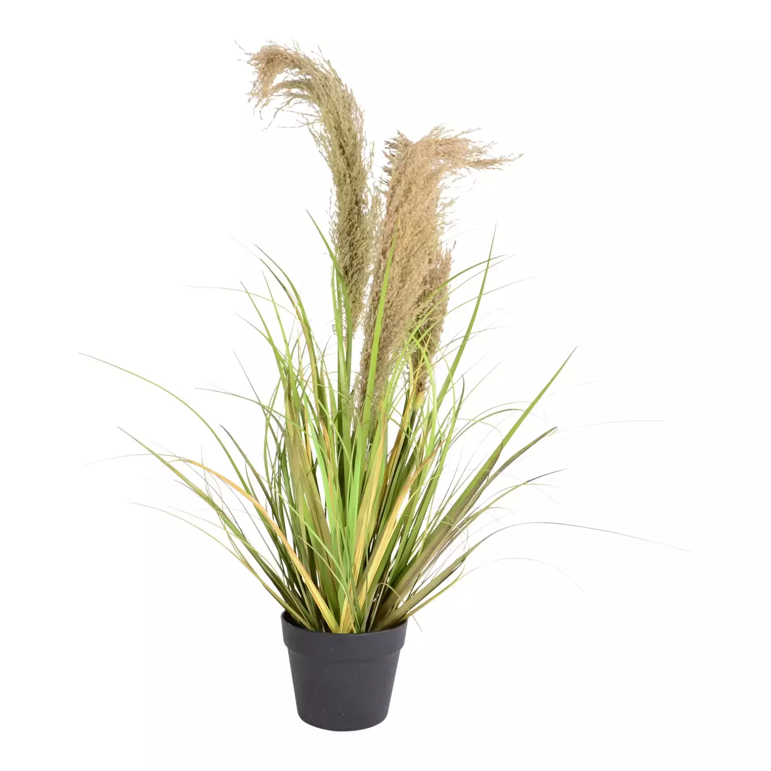 Heb je geen groene vingers? Dan is deze zijden kunstplant perfect voor jou! Deze mooie Rietpluim gras zijden plant zit in een zwarte pot, is 94 cm hoog, is groen van kleur en heeft 3 toppen.