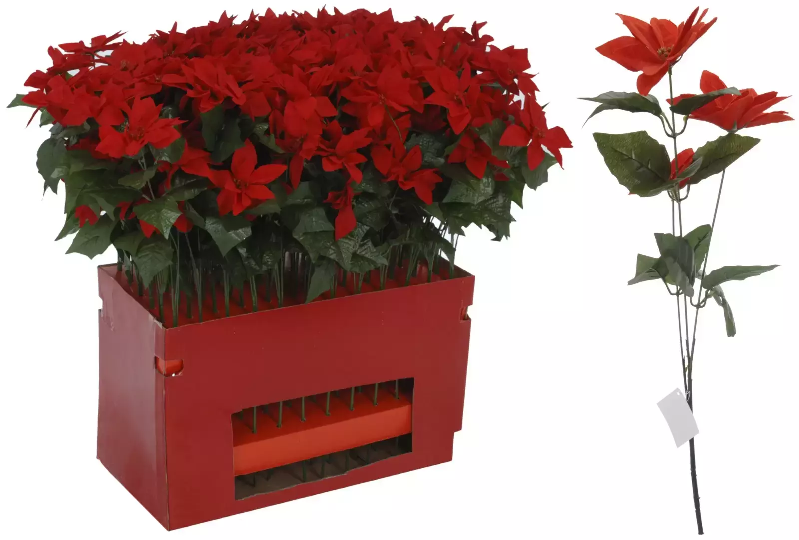 Wil jij graag de kerst in huis halen? Kijk niet verder! de rode kunstbloem kerstster is 66cm hoog en zeker iets voor jou. Deze kunstbloem is mooi in een boeket of in een vaas met meerdere takken. Met zijn realistische ontwerp en levendige kleur brengt deze kunstbloem warmte en kerst in elke ruimte. Daarnaast is een kerstster een liefdevolle gift. Het hoogwaardige materiaal zorgt ervoor dat de bloem er levensecht uitziet, terwijl het onderhoudsvrije karakter ervoor zorgt dat je er lang van kunt genieten zonder water of verzorging.