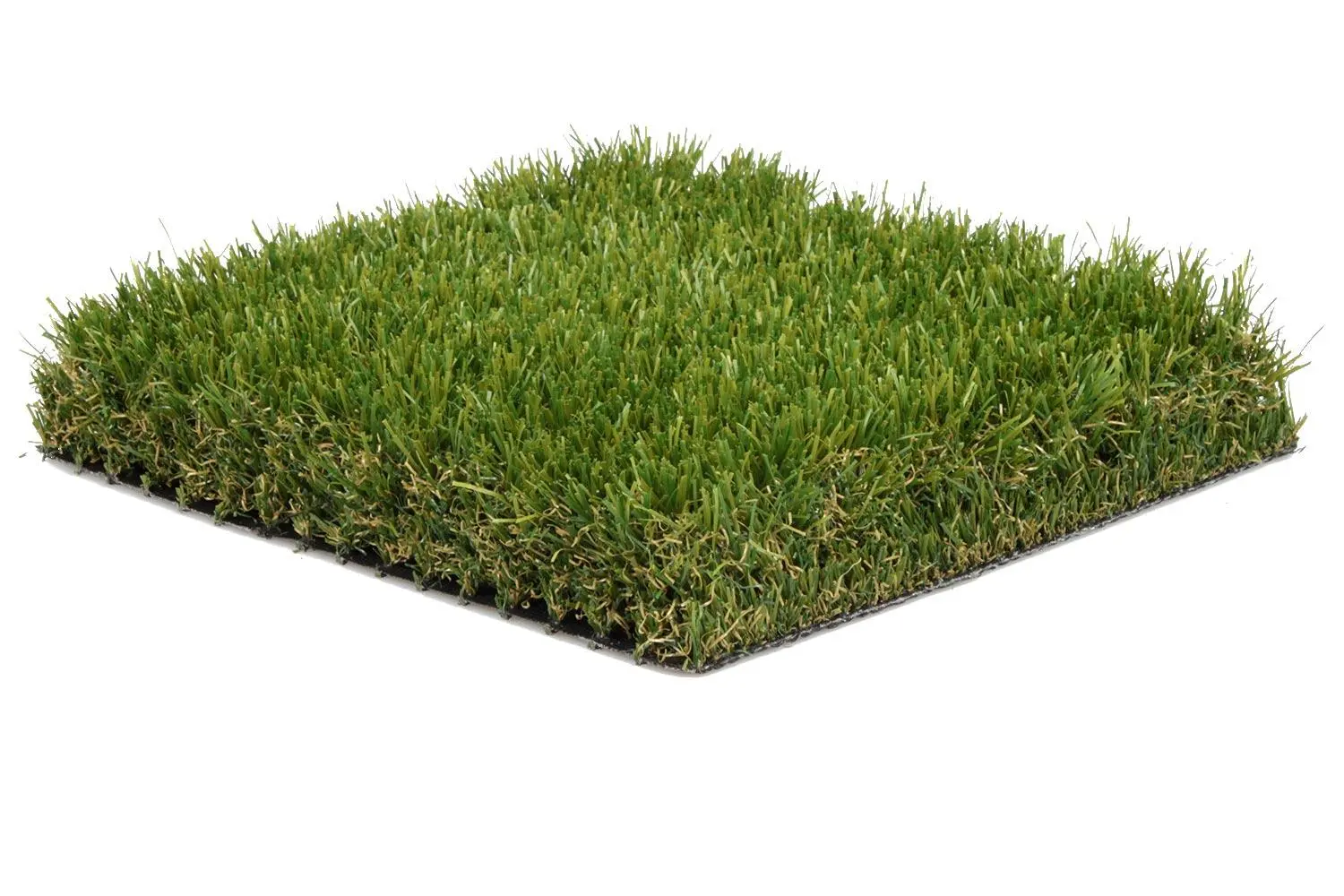 Het meest natuurgetrouwe kunstgras in ons assortiment. Uiterst natuurgetrouw en vrijwel niet van echt te onderscheiden. Op een 'PU' backing. Beter bestaat niet. Jolie45 'PU' is een kunstgrassoort waarmee je een heel fraai en natuurlijk gazon kunt maken en waarbij duidelijke bruine mosdraden zijn verwerkt. Verder bestaat Jolie45 uit vier verschillende soorten vezels, vier verschillende hoogtes en vier verschillende kleuren. Deze combinatie maakt het product een beetje rommelig. Maar wees eerlijk... natuurlijk gras ziet er ook niet uit als een biljartlaken. De backing is van 'PU'. Dat is een nieuwe ontwikkeling op het gebied van kunstgras voor in de tuin. Een 'PU' backing is in zijn productie een stuk milieuvriendelijker en de hechting van de vezels aan de mat is vele malen sterker dan bij een latex-backing. Dit maakt het mogelijk om het product te kenmerken als een product wat toepasbaar is bij intensief gebruik. Voor een product met een 'PU' backing geldt ook dat het kunstgras in z'n geheel geen vocht absorbeert. Een latex backing doet dat wel. In het geval er huisdieren in de tuin spelen en hier en daar een plasje doen, is dit product zeer aan te raden. Vocht wordt niet vastgehouden, evenals de bijhorende luchtjes niet. Tevens is de stevige hechting van 'PU' iets wat het diervriendelijke karakter van het product ondersteunt.