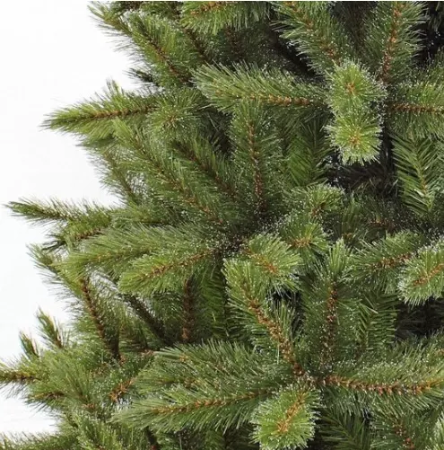 De takken van de Forest Frosted kunstkerstboom hebben een natuurlijke, realistische bruine kleur, met daarop stevige PVC-naaldjes die door hun donkergroene tint nauwelijks te onderscheiden zijn van echte dennennaalden. Dit geeft je het beste van twee werelden: de charme van een natuurlijke boom met het gemak van een kunstboom.