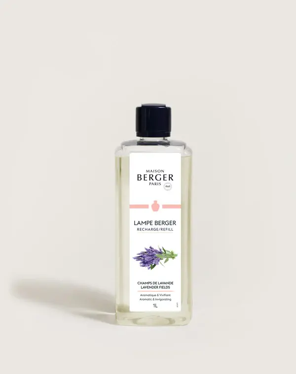 Het Lampe Berger Huisparfum 1L Champs de Lavande voor in uw Lampe Berger, onderdeel van de bloemige geurfamilie van Maison Berger Paris, is een prikkelend en subtiel huisparfum dat eer betoont aan de door de zon verwarmde blauw / paarse lavendelvelden in de Provence..Met als eerste het frisse en fruitige facet van eucalyptus en peer, gevolgd door de kracht en de schoonheid van lavendel die beweegt in de Provençaalse bries, geven geurnoten van balsem en hout Champs de Lavende een discreet warm accent. Door de combinatie van de ingrediënten van dit huisparfum, veranderd uw huiskamer bij het gebruik van de Lampe Berger luchtreiniger en het huisparfum Champs de Lavende in een heerlijk ruikend lavendelveld! De huisparfums van Maison Berger Paris worden stuk voor stuk gecreëerd in het Zuid-Franse Grasse. Omringt door de beste Franse parfumeurs worden er verfijnde geursferen ontwikkelt die tegelijkertijd slechts stoffen in de lucht verspreiden die perfect beheerst en gecontroleerd worden. Een belangrijke garantie voor degenen die de kwaliteit van de lucht die zij inademen van essentieel belang is.