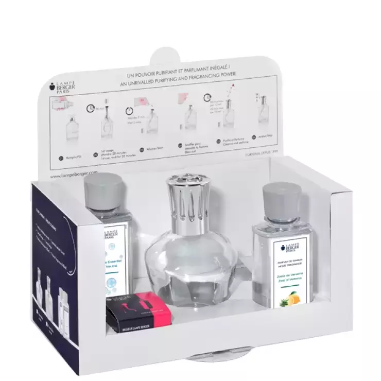 De Lampe Berger Essentielle Ronde giftset met het 180 ml huisparfum Zeste de Verveine en Neutre (Neutraal) is het ideale cadeau voor vrienden, familie of gewoon voor jezelf!