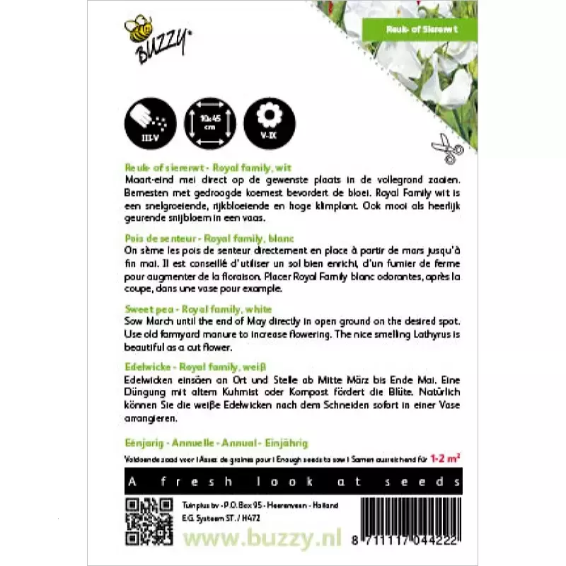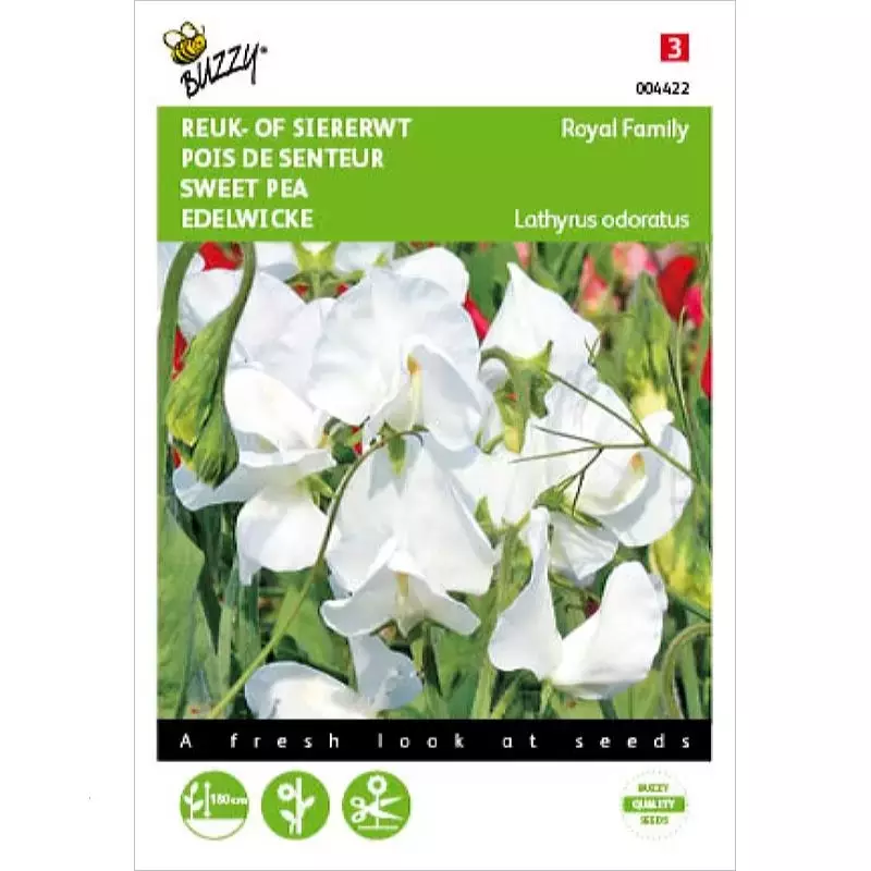 Reuk- of siererwt - Royal family wit_x000D_ Lathyrus kan direct op de plaats van bestemming worden gezaaid vanaf_x000D_ maart tot eind mei. Snelgroeiende hoge klimplant, rijkbloeiend en heerlijk_x000D_ geurend._x000D_ _x000D_