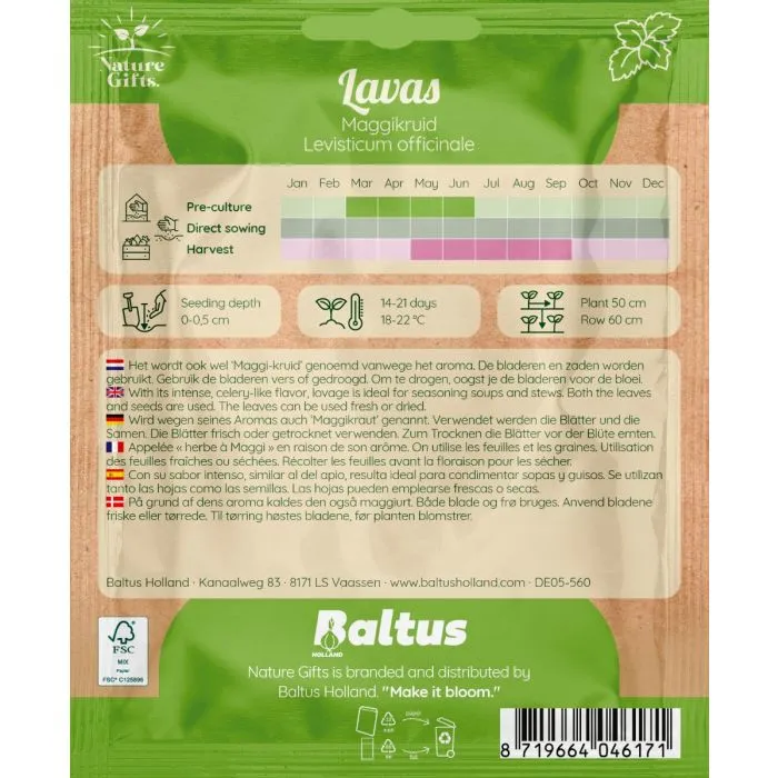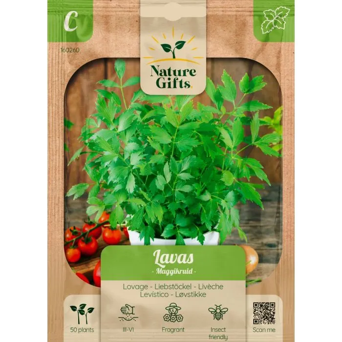 Lavas maggikruid is een sterke, aromatische plant met brede bladeren en een hartige smaak. Fantastische smaakmaker in soepen en sauzen.