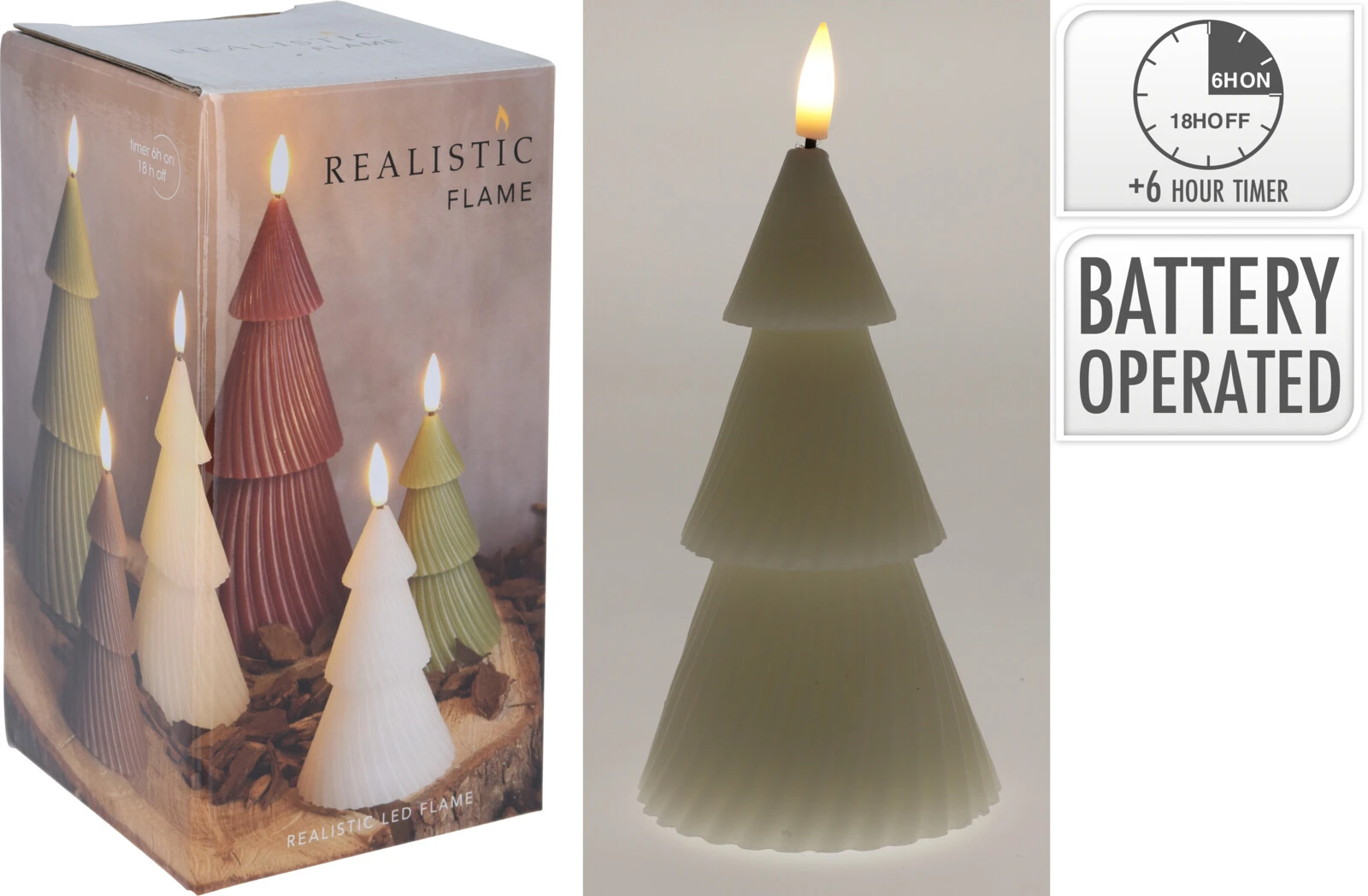 Uniek Boomontwerp: De kaars is vormgegeven als een kerstboom, wat zorgt voor een speelse en feestelijke uitstraling. De ivoorkleurige afwerking geeft een elegante touch en past prachtig bij diverse interieurstijlen.